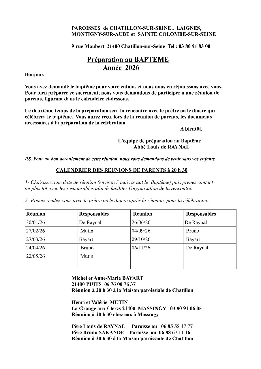 - Préparation de la liturgie du Baptême