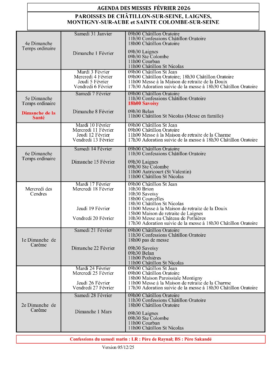 Agenda des Messes